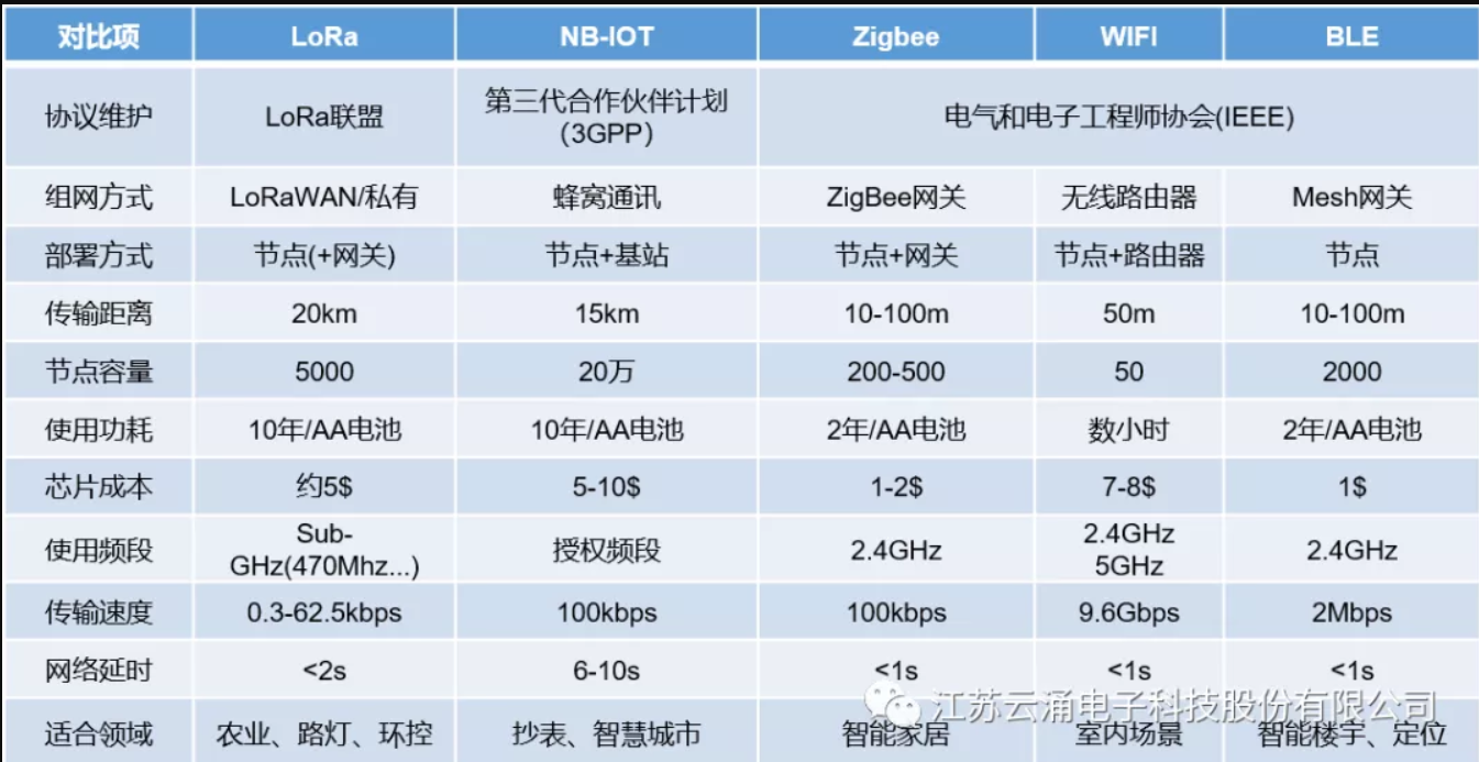 各無線通訊技術(shù)對比