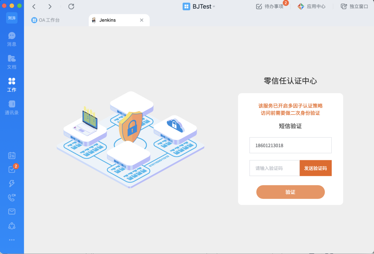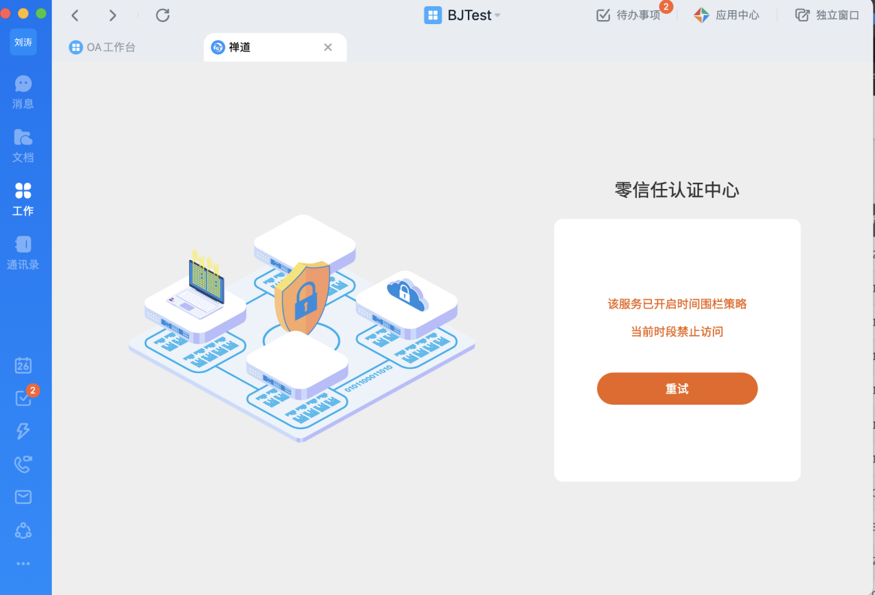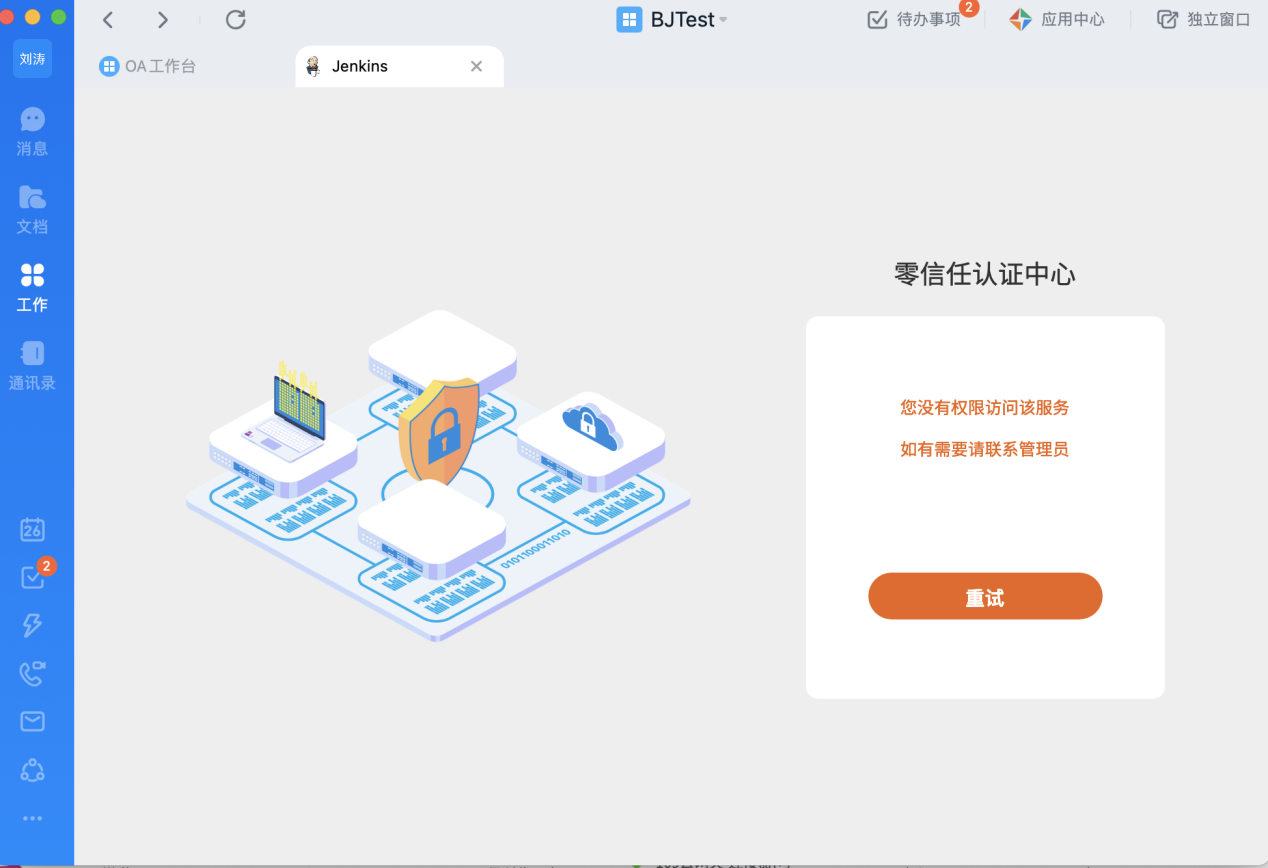 用戶登錄釘釘工作臺(tái),看到的下面兩個(gè)應(yīng)用即為受零信任保護(hù)的私有部署Web應(yīng)用:
