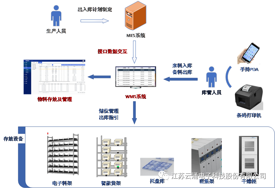 ? ? ? 此外,云涌科技擁有自己的倉(cāng)庫(kù)管理設(shè)備,通過(guò)與WMS系統(tǒng)軟件相結(jié)合,可以實(shí)現(xiàn)整個(gè)倉(cāng)儲(chǔ)管理流程: