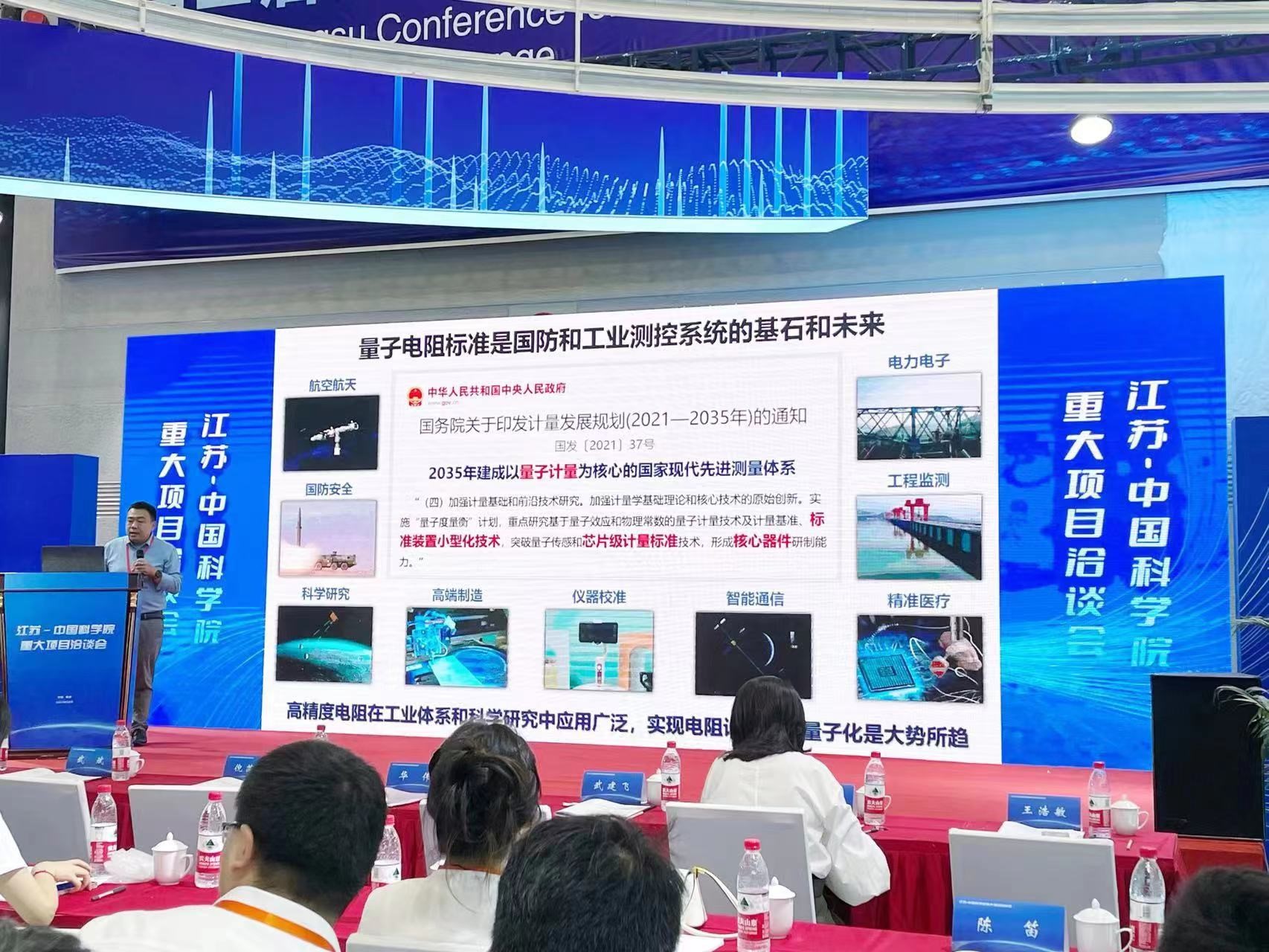 在江蘇——中國科學院重大項目洽談會的路演中,王浩敏研究員發(fā)表了題為《提供最精確量值的可移動量子電阻標準裝置》的演講,他表示量子電阻標準支撐了整個科學和工業(yè)測量參比體系,在電子信息、航空航天、醫(yī)療以及國防等領(lǐng)域有著廣泛的用途。量子電阻是可以直接測量且只與自然常數(shù)相關(guān)的宏觀電學物理量。目前,中、美、日等國家級計量實驗室均建成了量子霍爾電阻標準裝置(QHRS),并在進行推廣,我國也正在開展針對用于新一代量子電阻的芯片技術(shù)研發(fā)。QHRS的研制將帶來電學測量原理、方法和儀器形態(tài)的全面創(chuàng)新,并形成獨特的材料與設(shè)備產(chǎn)業(yè),從而對信息產(chǎn)業(yè)結(jié)構(gòu)產(chǎn)生巨大影響。