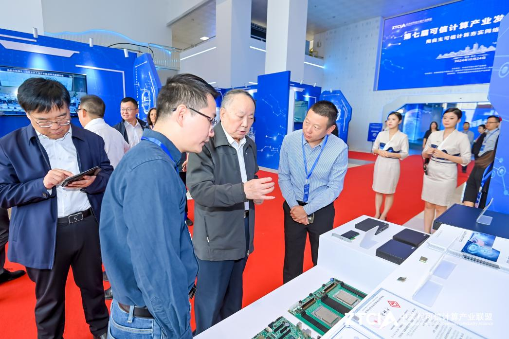 本次大會,云涌科技為大家?guī)砹艘宰灾骺尚艦榛A(chǔ)的主板、服務(wù)器、云終端、加密卡,以及可信密碼模塊等諸多可信計算成果,獨(dú)一無二的視覺盛宴,吸引了眾多行業(yè)專家、學(xué)者以及其他相關(guān)人士的駐足詢問。