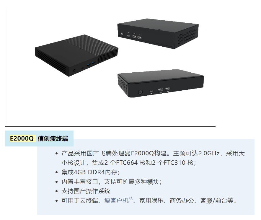 此外,云涌科技還帶來了基于 E2000Q 構(gòu)建的信創(chuàng)瘦終端和網(wǎng)安硬件平臺,以及可信根、加密卡、可信服務(wù)器等系列產(chǎn)品,同樣在現(xiàn)場備受矚目。